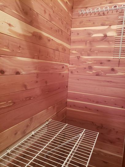 Nothing says outdoorsy and has a camper feel like a cedar plank ceiling.